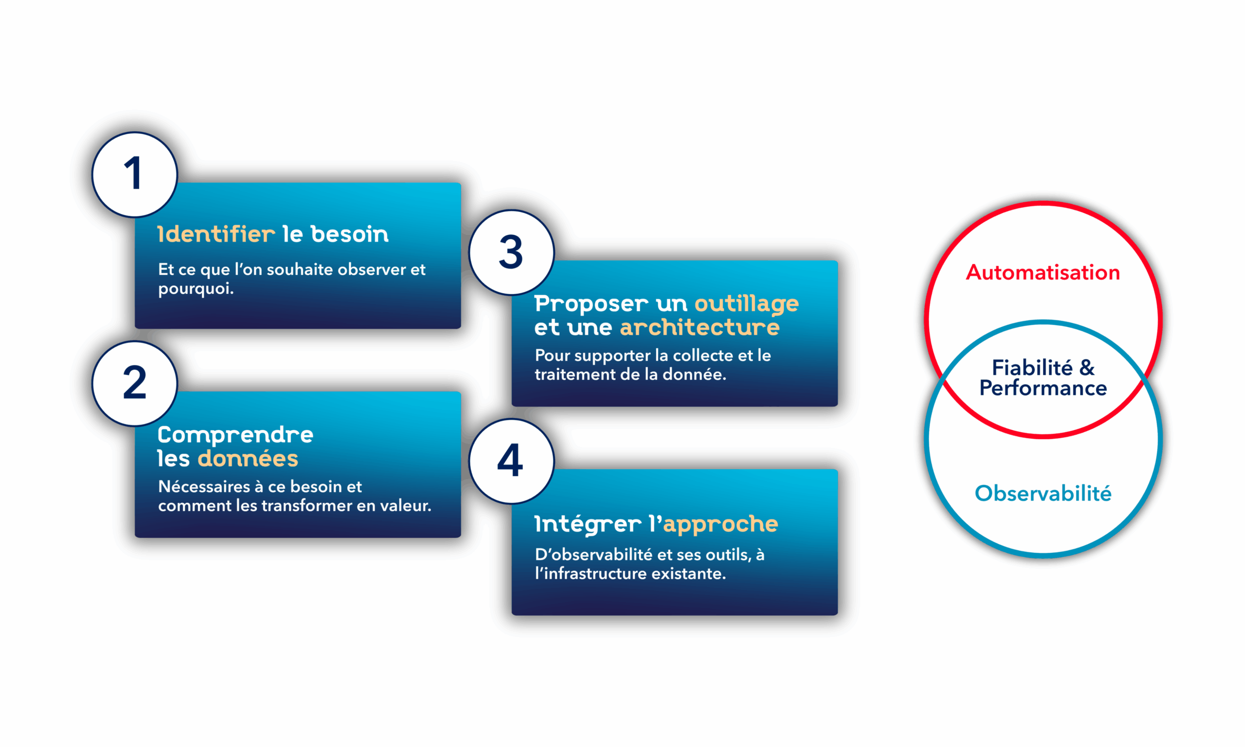 Notre démarche d’observabilité est agnostique et scalable, construite sur nos retours d’expérience chez nos clients.