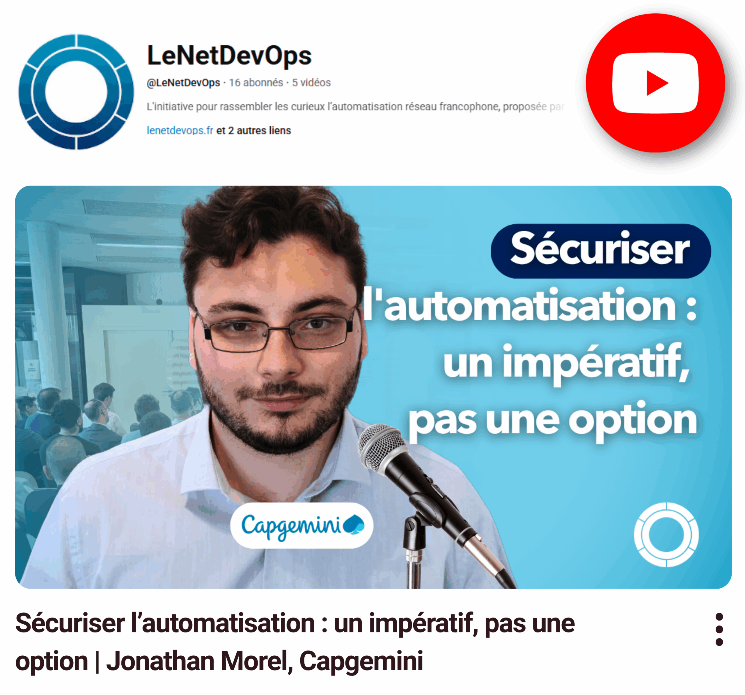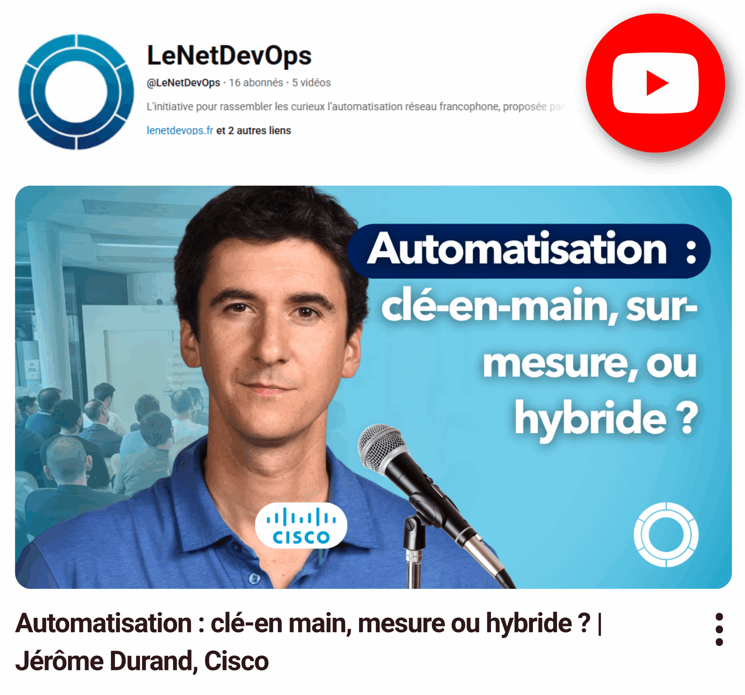 En cliquant sur ces vignettes, vous serez dirigé vers la chaîne YouTube LeNetDevOps.